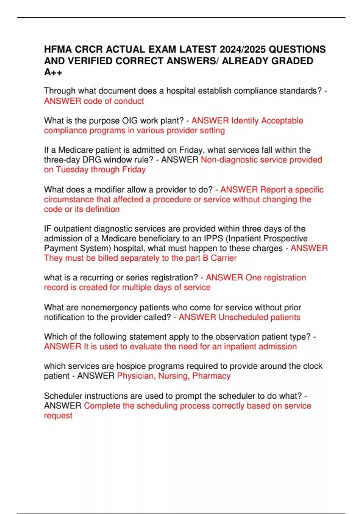 HFMA CRCR ACTUAL EXAM LATEST 2024/2025 QUESTIONS