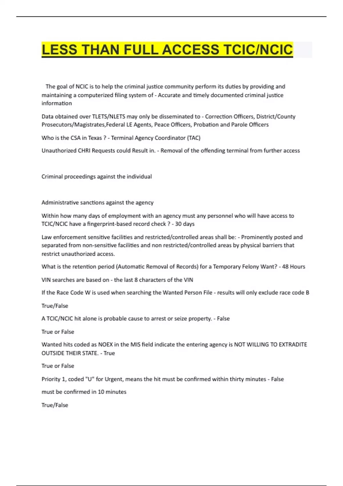 LESS THAN FULL ACCESS TCIC/NCIC