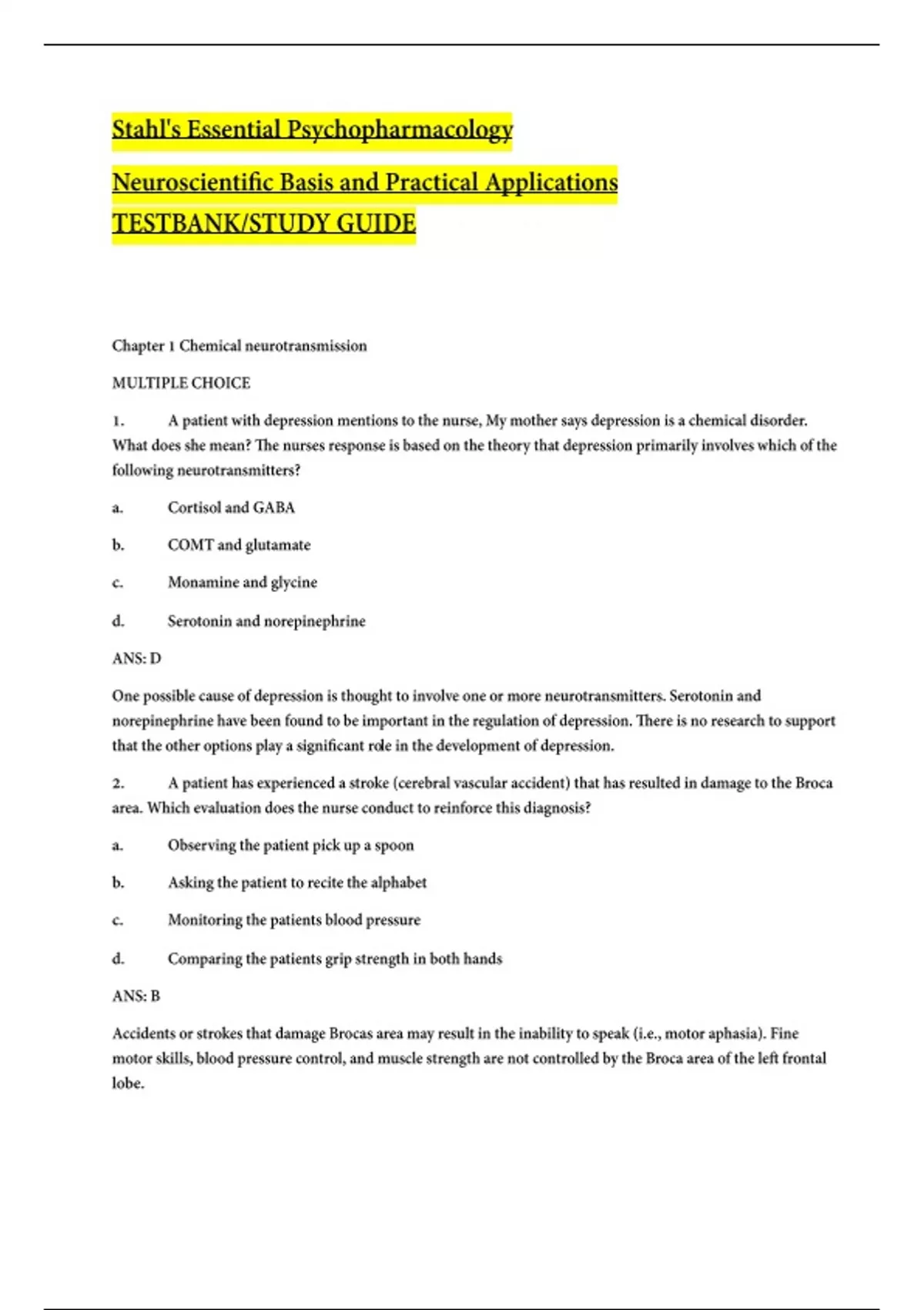 TB Stahls Essential Psychopharmacology 4th Edition Test Bank 2024/2025 Updated.
