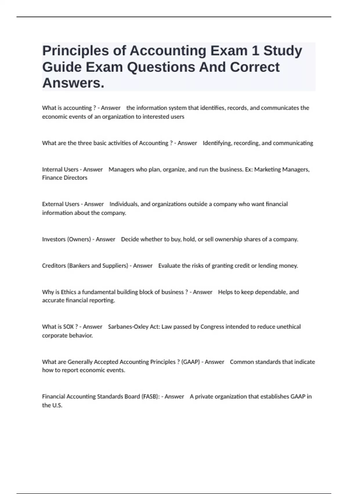 Financial Accounting Standards Board (FASB): - Answer A private organization that establishes GAAP in
