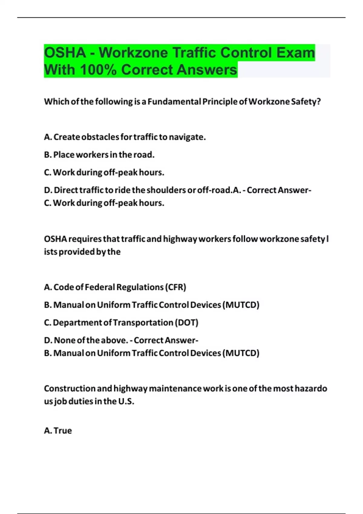 OSHA - Workzone Traffic Control Exam With 100% Correct Answers