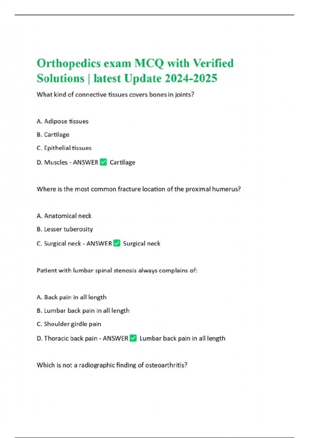 Orthopedics exam MCQ with Verified Solutions | latest Update