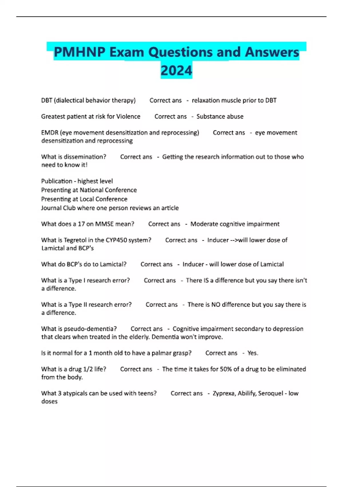 PMHNP Exam Questions and Answers 2024