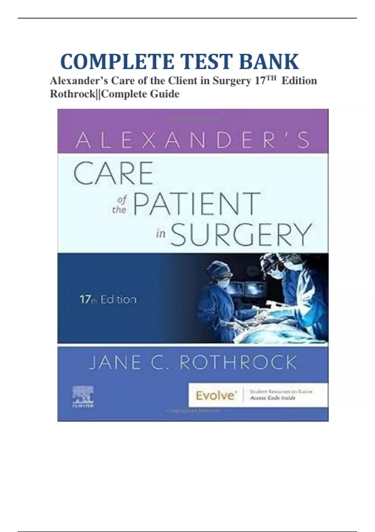 COMPLETE TEST BANK Alexander’s Care of the Client in Surgery 17TH Edition Rothrock||Complete Guide||Questions and Answers with Rationales (CHAPTER 1-30)