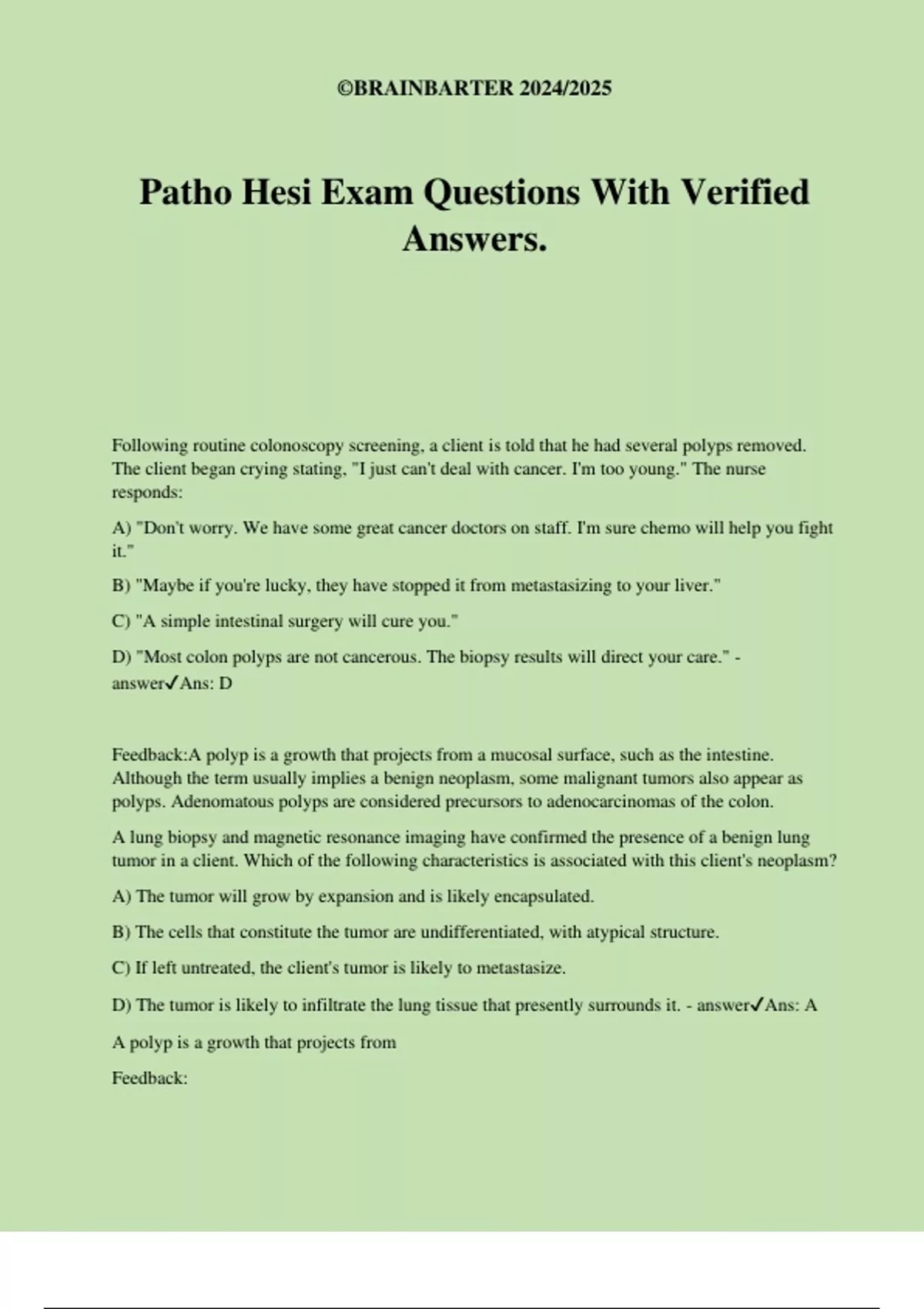 Patho Hesi Exam Questions With Verified