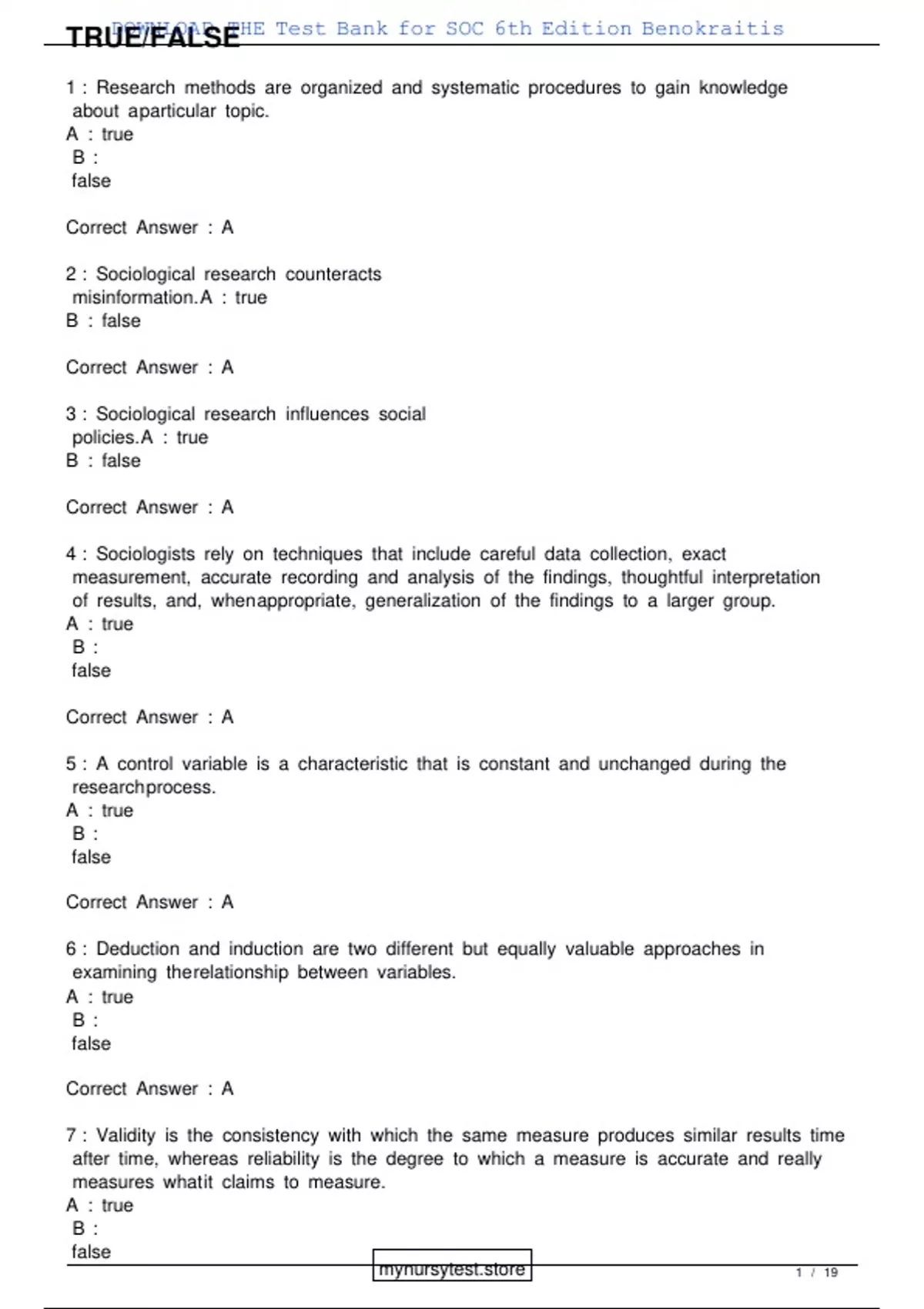 7 : vValidity vis vthe vconsistency vwith vwhich vthe vsame vmeasure vproduces vsimilar vresults vtime