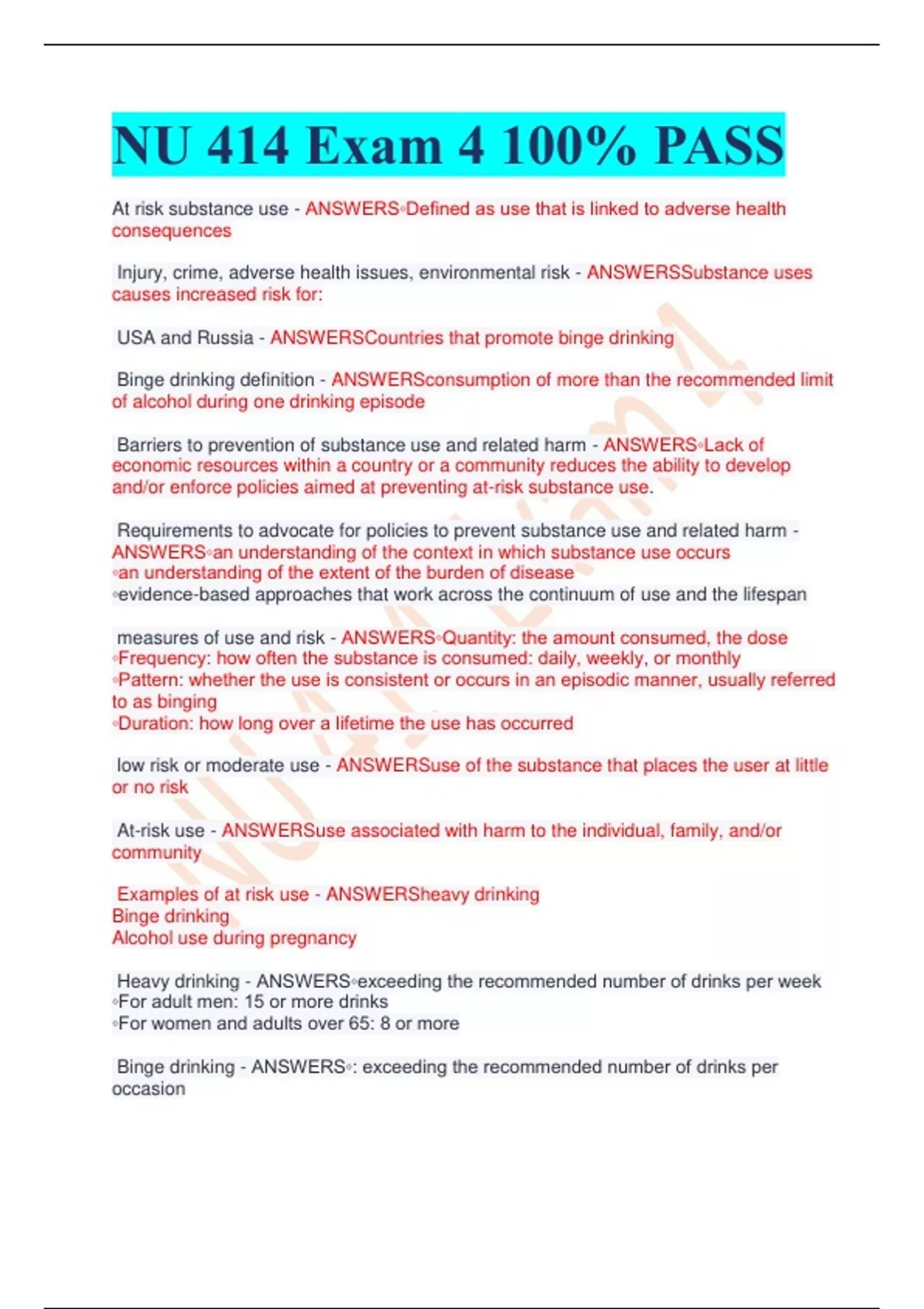 Heavy drinking - ANSWERS◦exceeding the recommended number of drinks per week