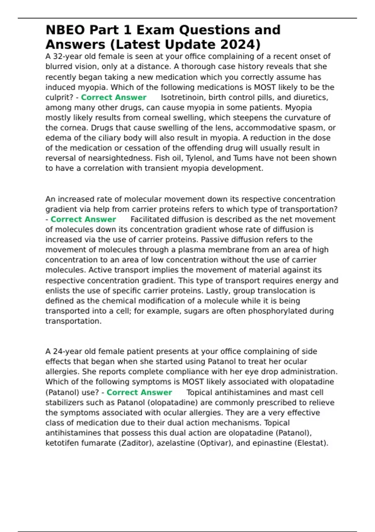 NBEO Part 1 Exam Questions and Answers (Latest Update 2024)