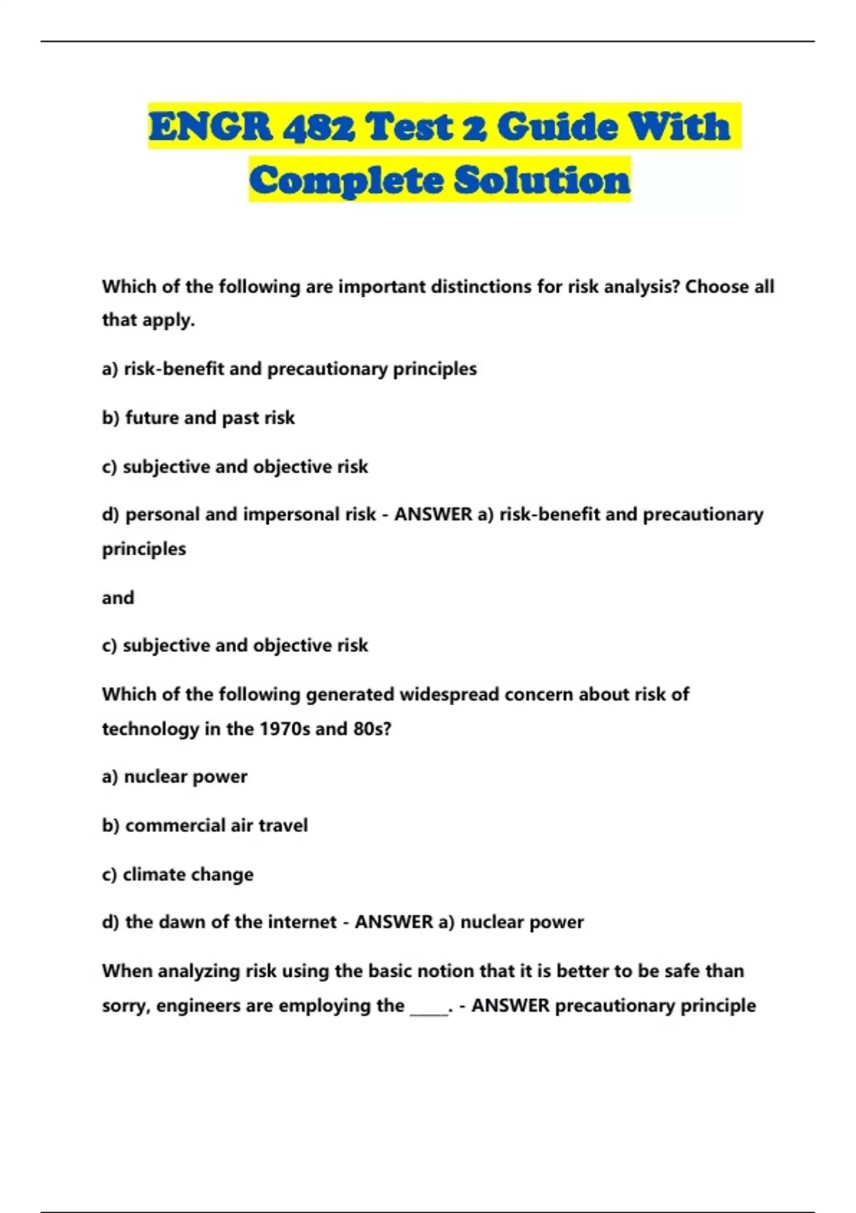 ENGR 482 Test 2 Guide With Complete Solution...