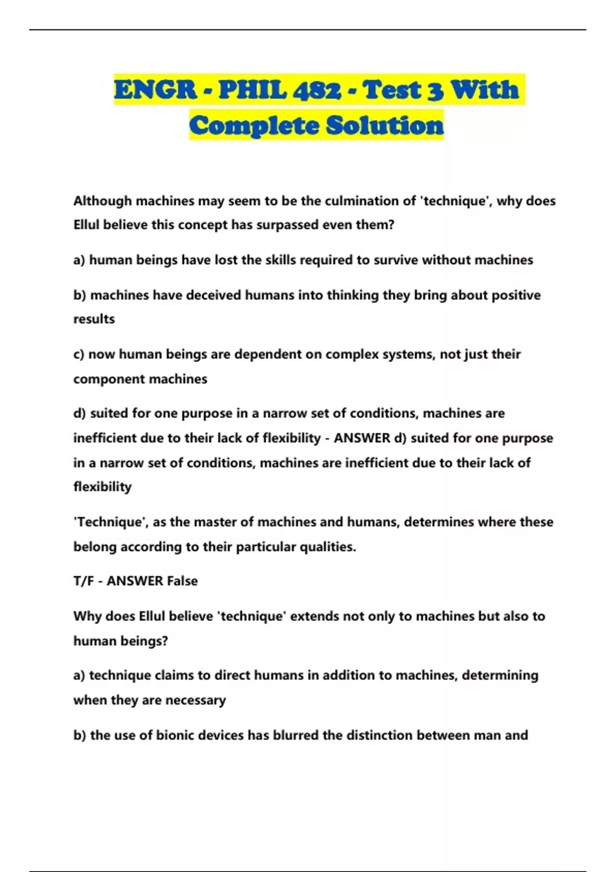 ENGR - PHIL 482 - Test 3 With Complete Solution...
