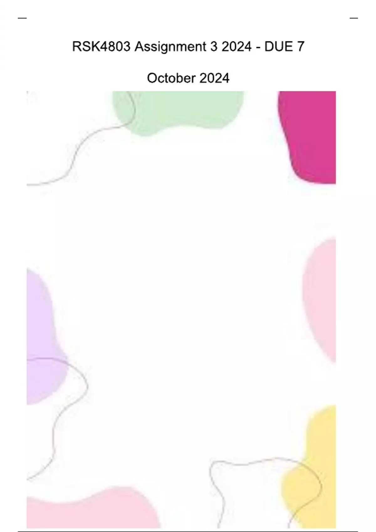 RSK4803 Assignment 3 (COMPLETE ANSWERS) 2024 - DUE 7 October 2024 ; 100% TRUSTED Complete, trusted solutions and explanations.