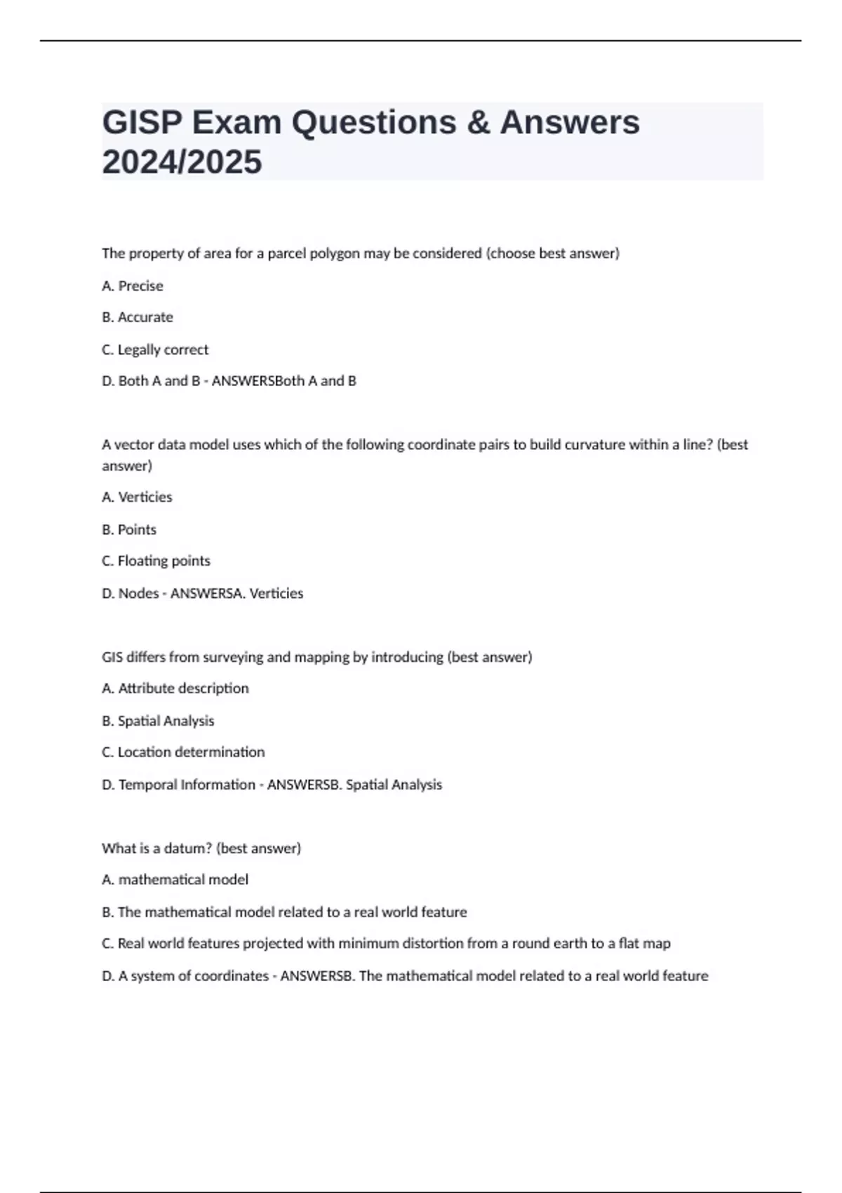 D. Temporal Information - ANSWERSB. Spatial Analysis