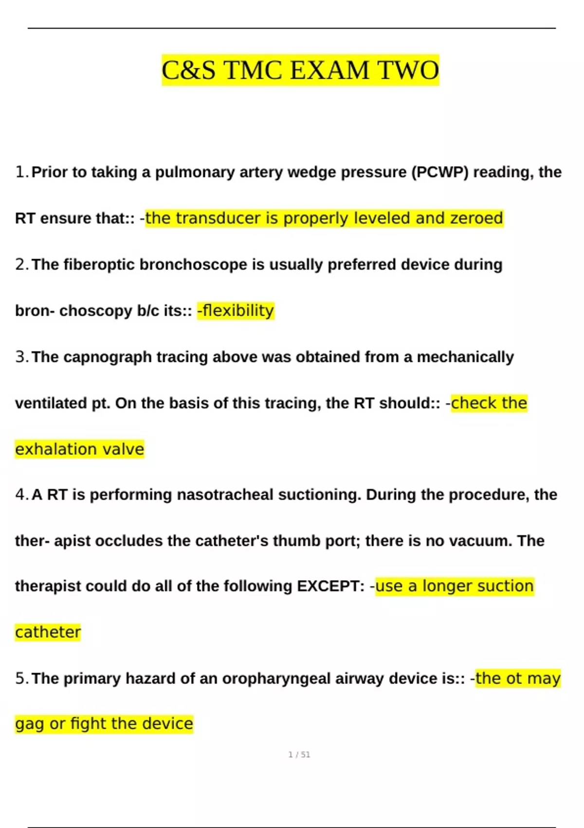 1.Prior to taking a pulmonary artery wedge pressure (PCWP) reading, the
