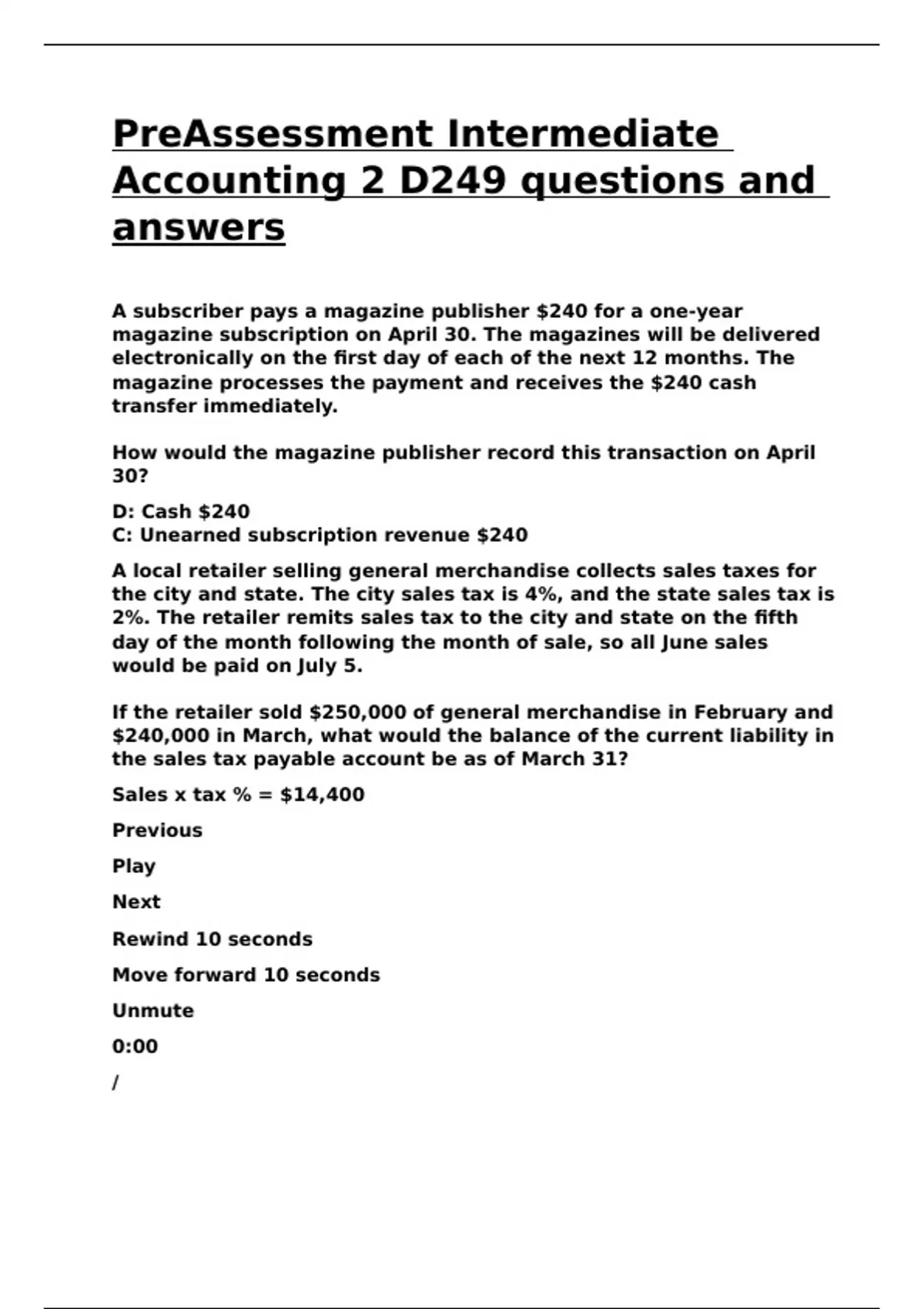 PreAssessment Intermediate Accounting 2 D249 questions and answers.