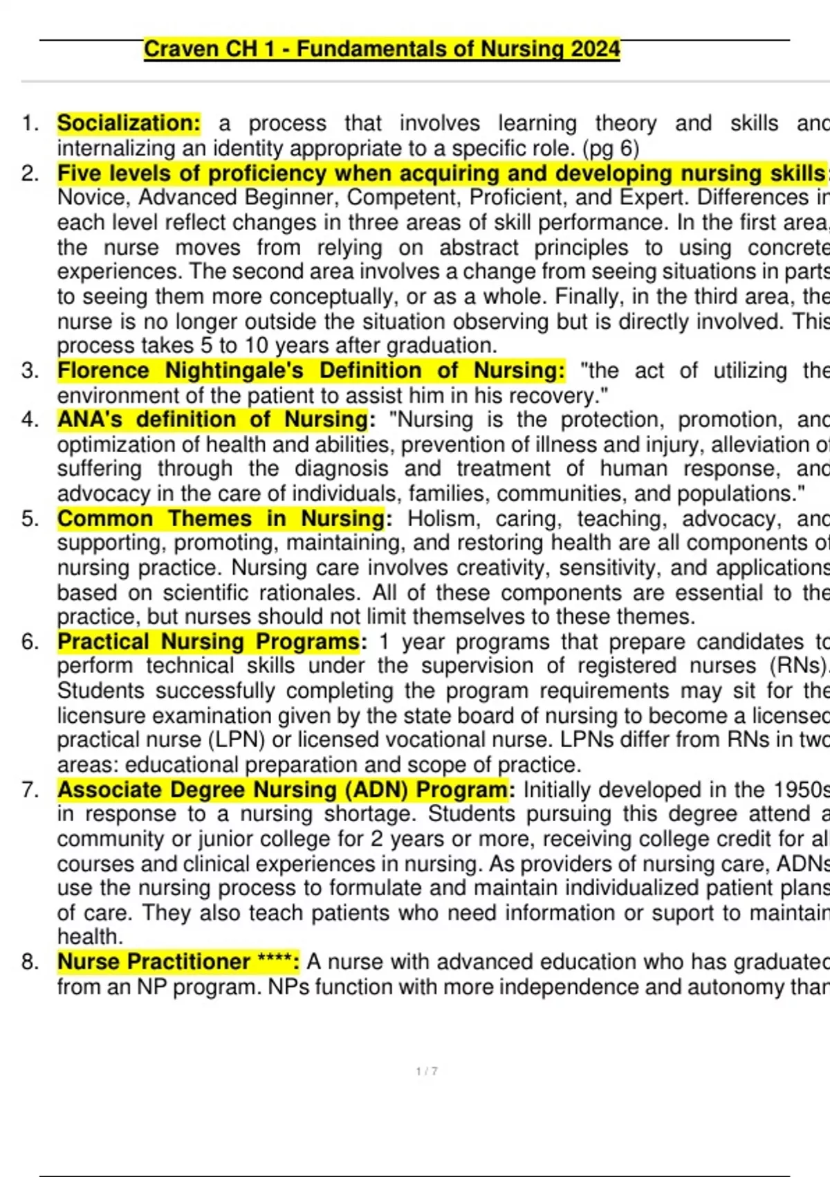 , Craven CH 1 - Fundamentals of Nursing 2024