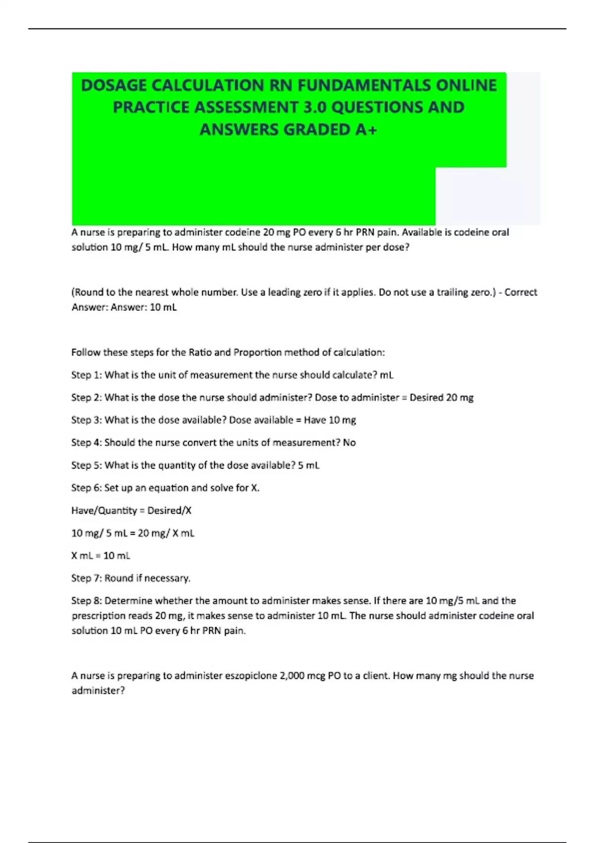 DOSAGE CALCULATION RN FUNDAMENTALS ONLINE PRACTICE ASSESSMENT 3.0 QUESTIONS AND ANSWERS GRADED A+_DOSAGE CALCULATION RN FUNDAMENTALS ONLINE PRACTICE ASSESSMENT 3.0 QUESTIONS AND ANSWERS GRADED A+_DOSAGE CALCULATION RN FUNDAMENTALS ONLINE PRACTICE ASSESSMENT 3.0 QUESTIONS AND ANSWERS GRADED A+_DOSAGE CALCULATION RN FUNDAMENTALS ONLINE PRACTICE ASSESSMENT 3.0 QUESTIONS AND ANSWERS GRADED A+_DOSAGE CALCULATION RN FUNDAMENTALS ONLINE PRACTICE ASSESSMENT 3.0 QUESTIONS AND ANSWERS GRADED A+_DOSAGE CALCULATION RN FUNDAMENTALS ONLINE PRACTICE ASSESSMENT 3.0 QUESTIONS AND ANSWERS GRADED A+_