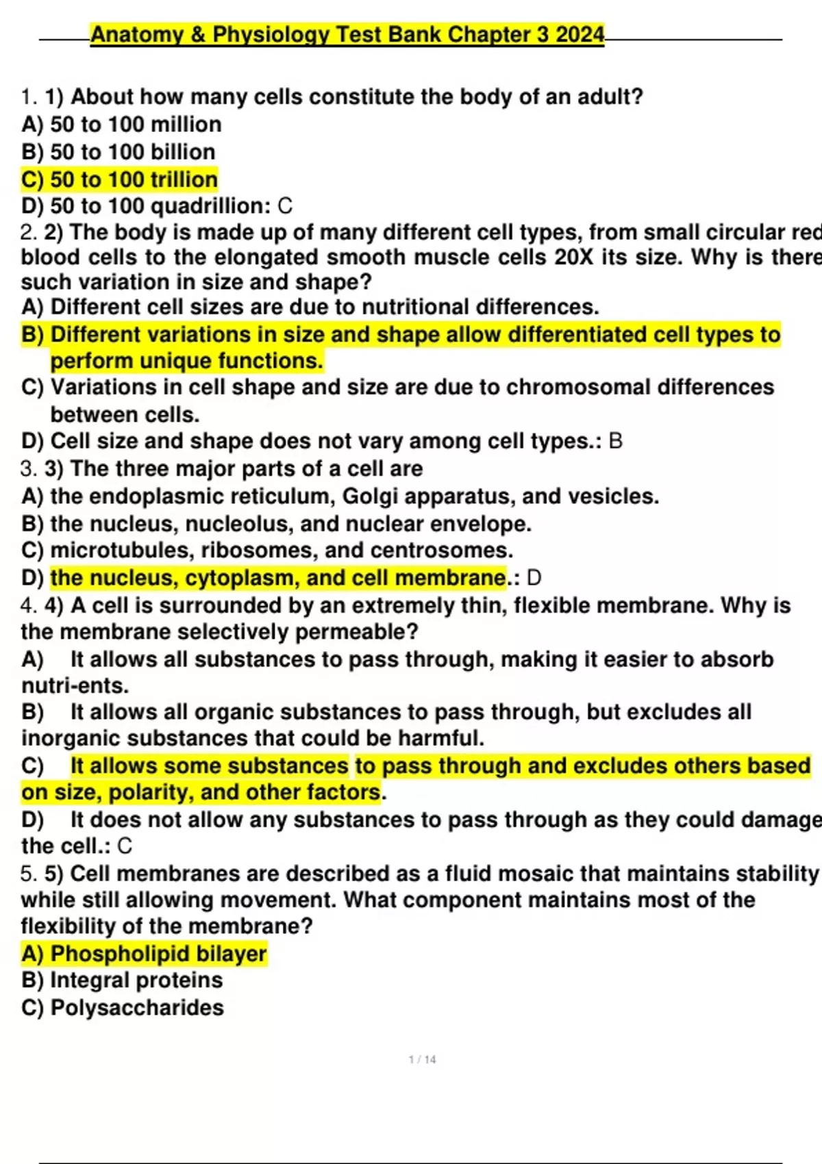 Anatomy & Physiology Test Bank Chapter 3 2024