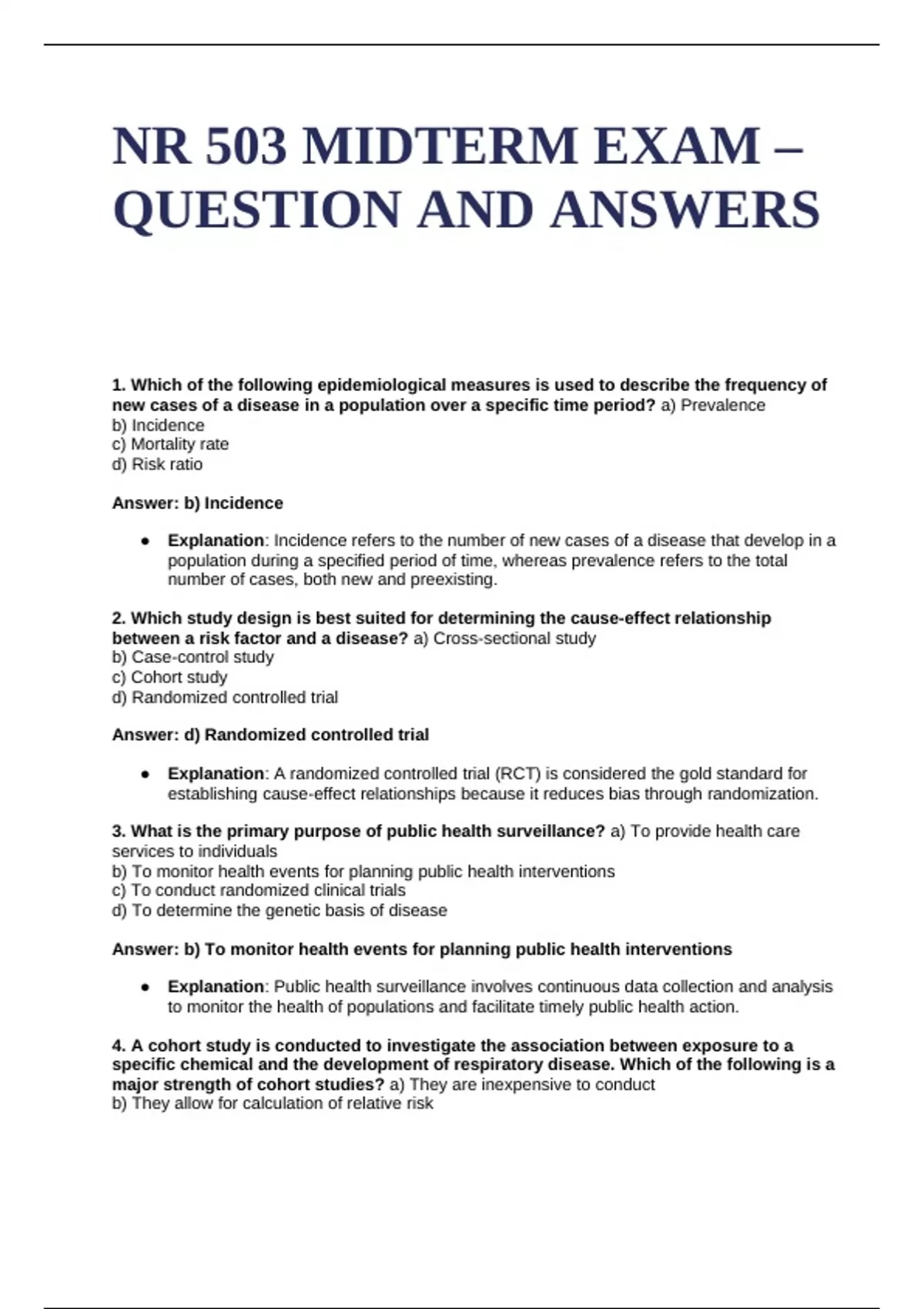 ● Explanation: Cohort studies allow researchers to follow exposed and unexposed groups