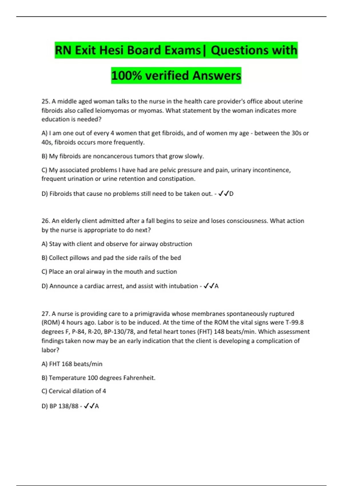 RN Exit Hesi Board Exams| Questions with 100% verified Answers