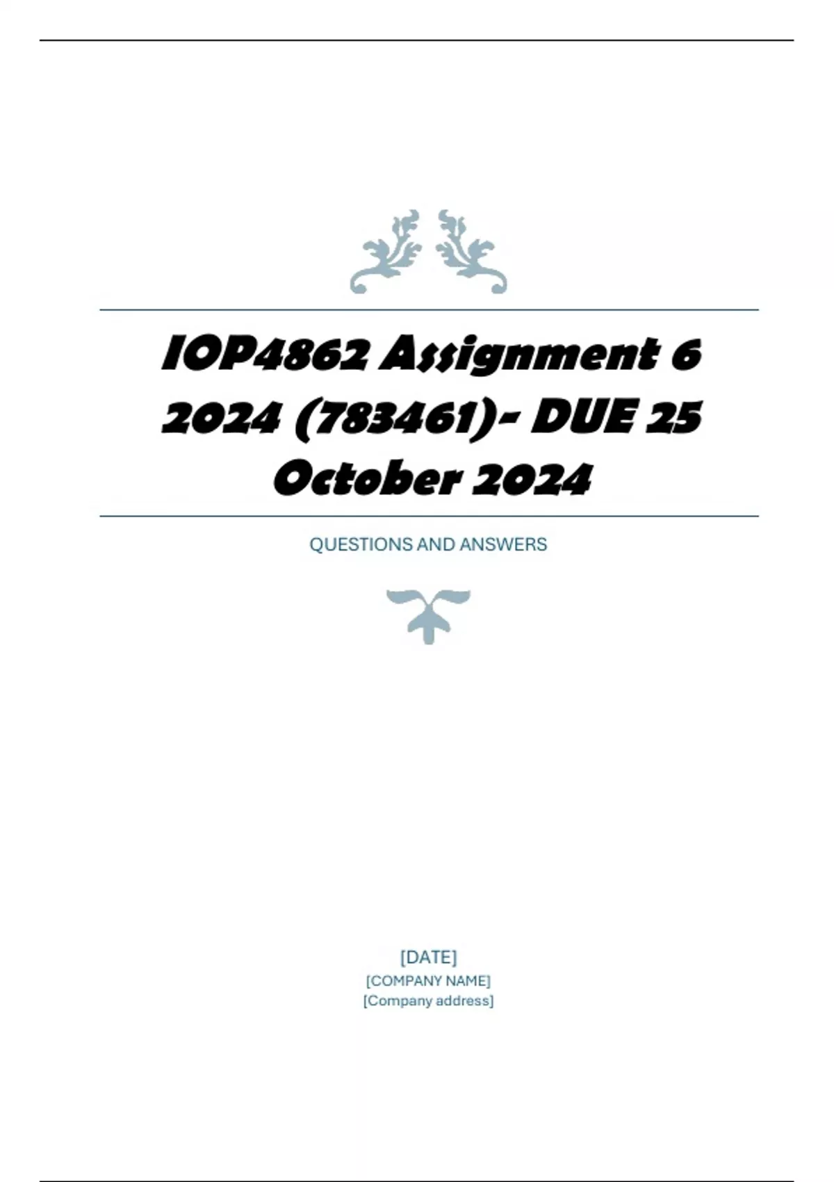 IOP4862 Assignment 6 2024 (783461)- DUE 25 October 2024 COMPLETE ANSWERS