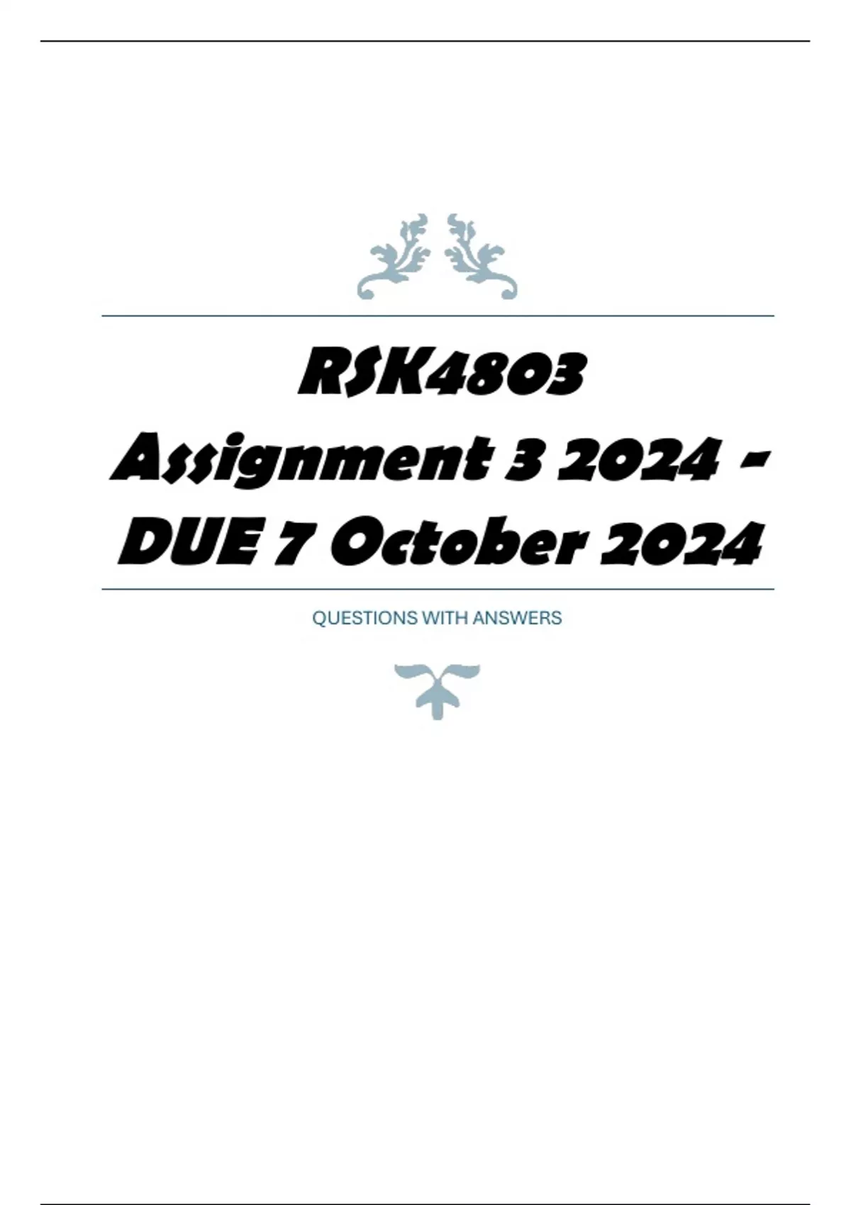 RSK4803 Assignment 3 2024 - DUE 7 October 2024 QUESTIONS WITH DETAILED ANSWERS