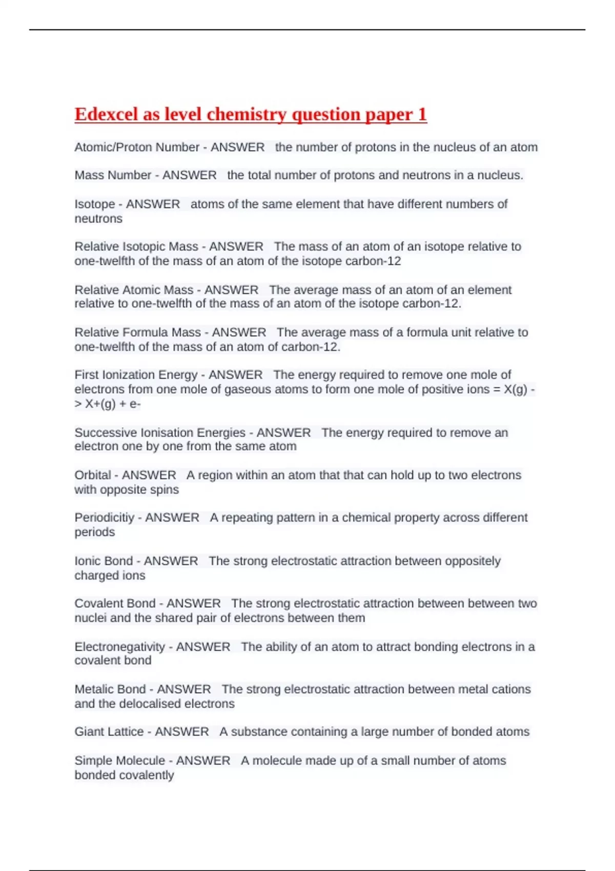 Edexcel as level chemistry