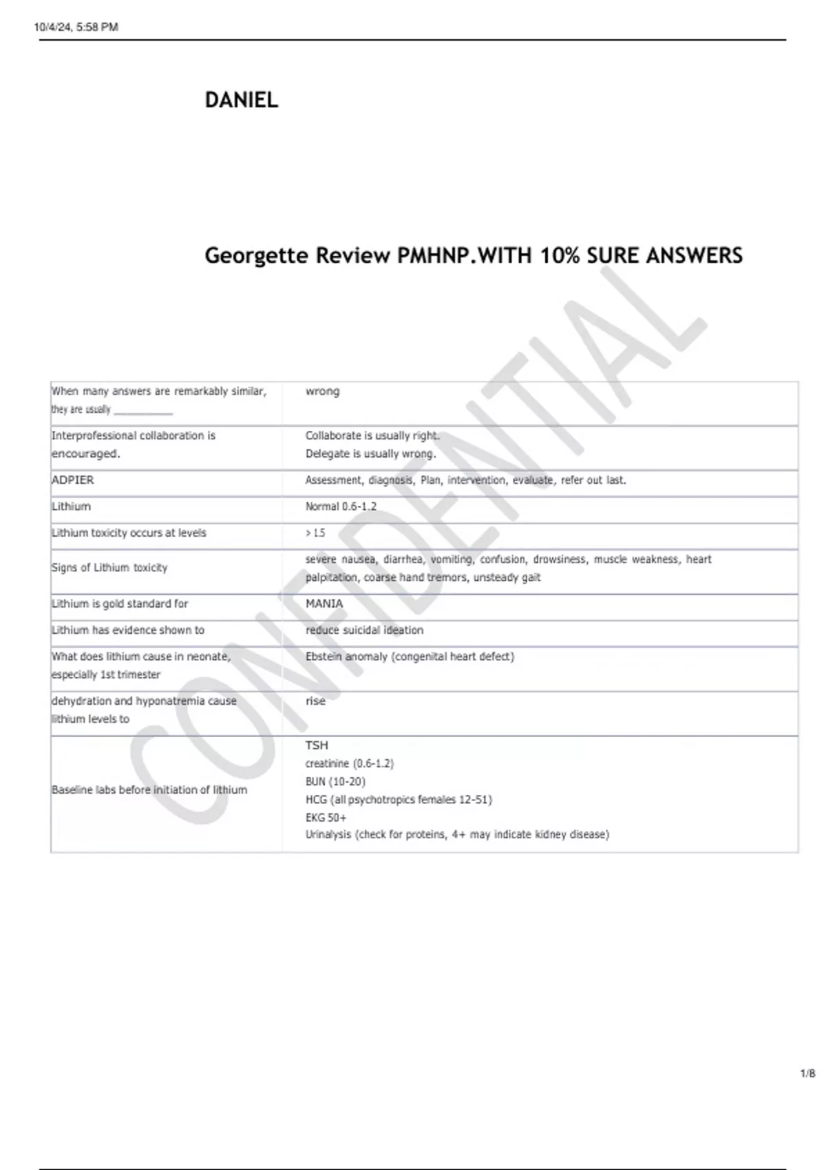 Georgette Review PMHNP.WITH 10% SURE ANSWERS