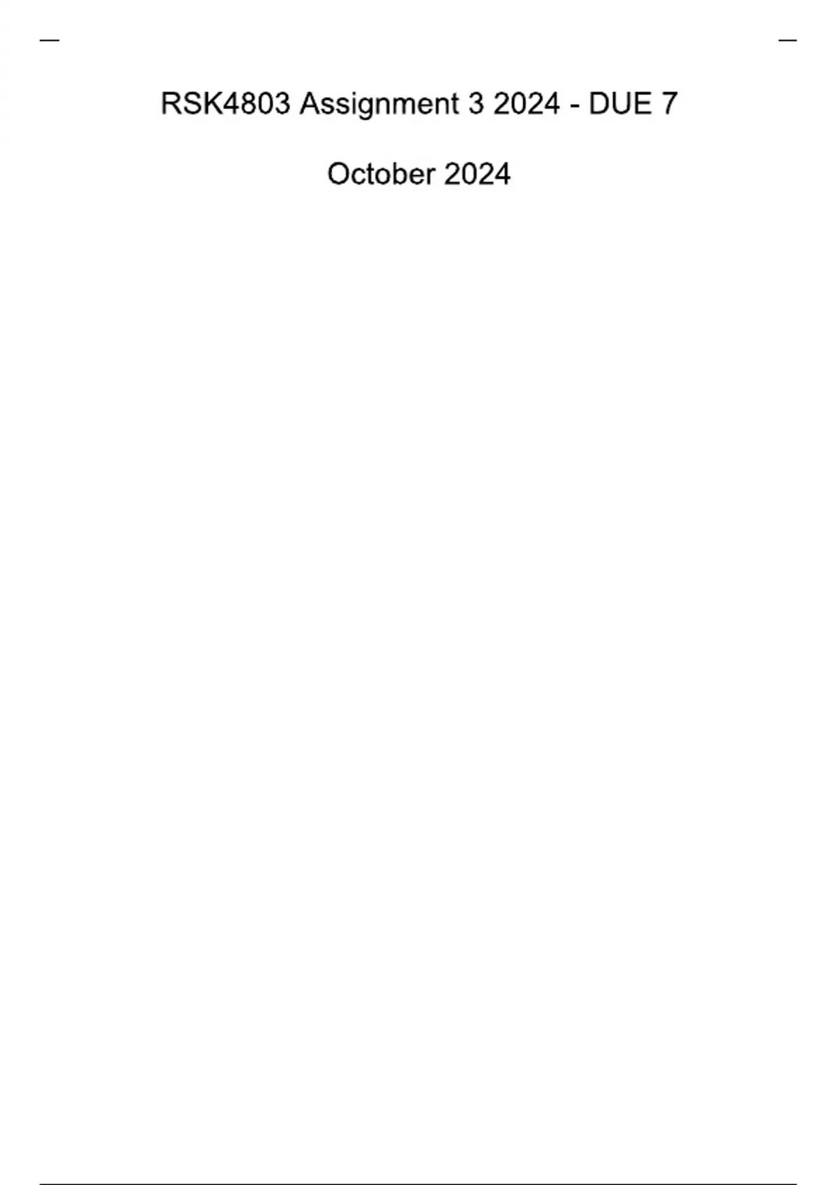 RSK4803 Assignment 3 2024 - DUE 7 October 2024 complete answers 2024. Risk Financing and Management