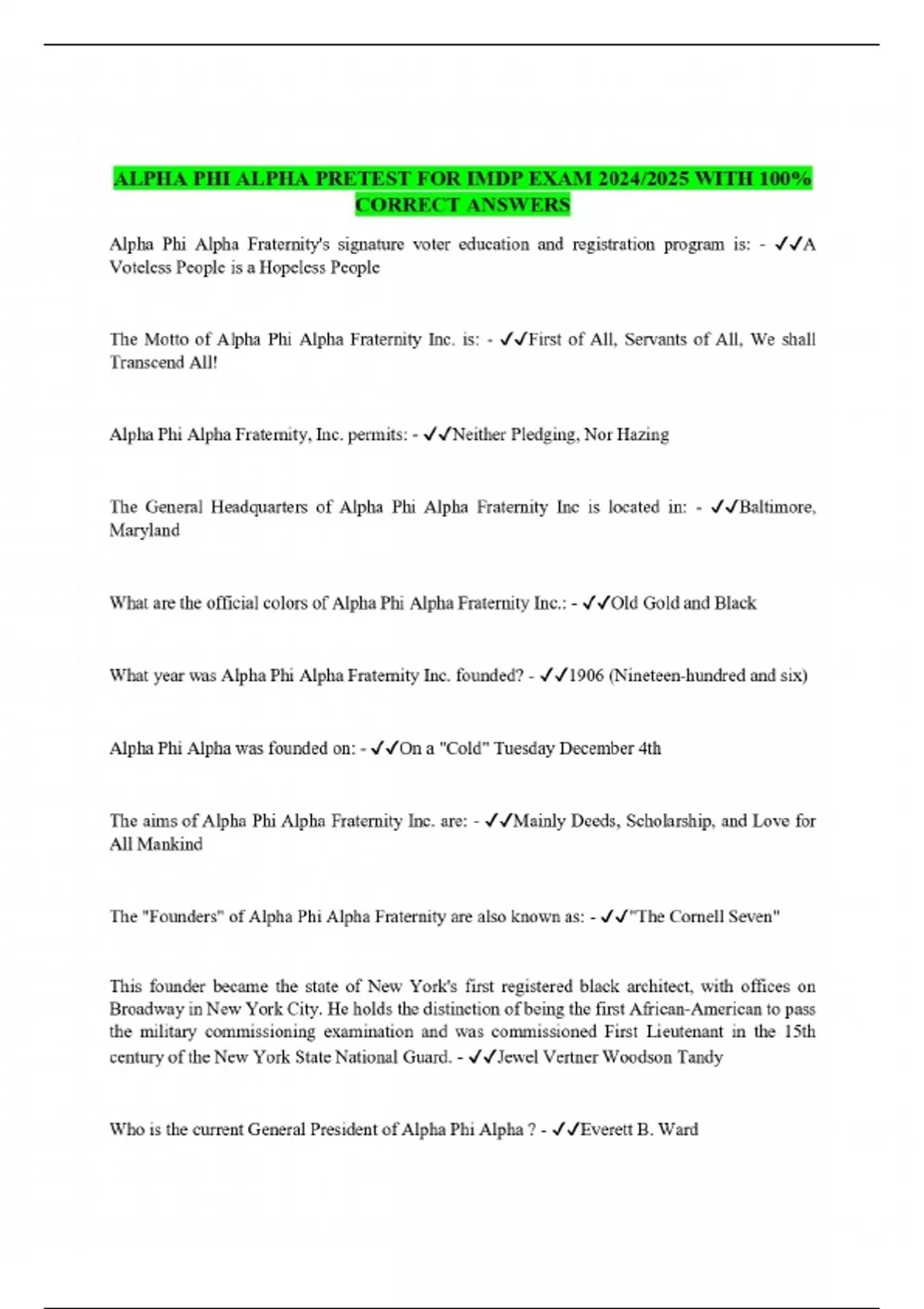 ALPHA PHI ALPHA PRETEST