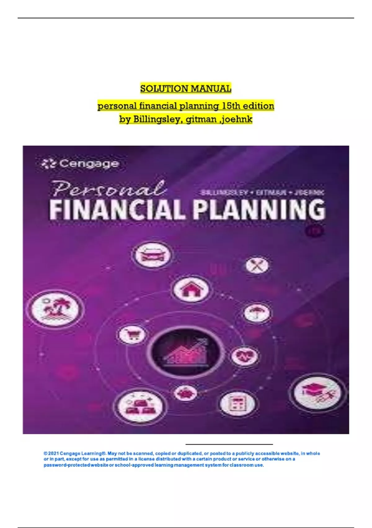 Solution Manual for Personal Financial Planning 15th Edition by Randy Billingsley, Lawrence J. Gitman, Michael D. Joehnk