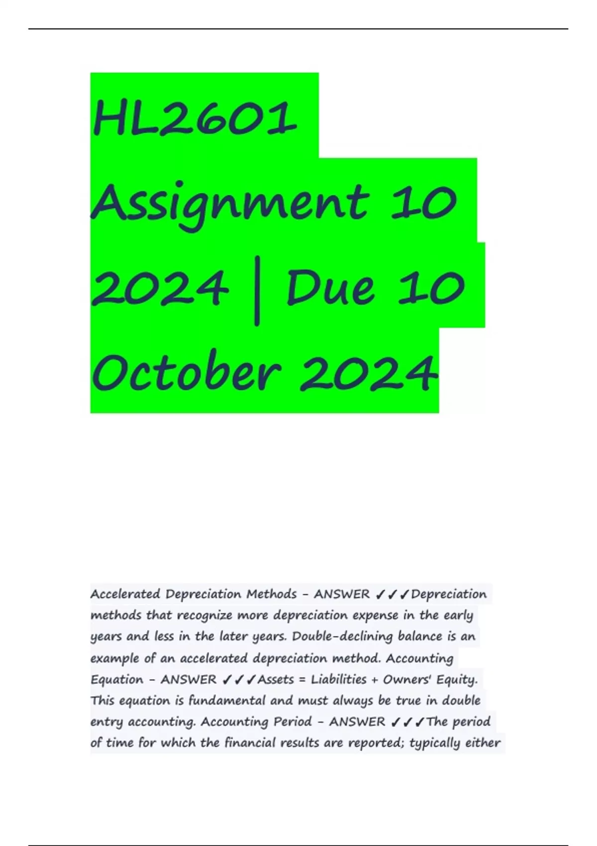 Accelerated Depreciation Methods - ANSWER ✓✓✓Depreciation