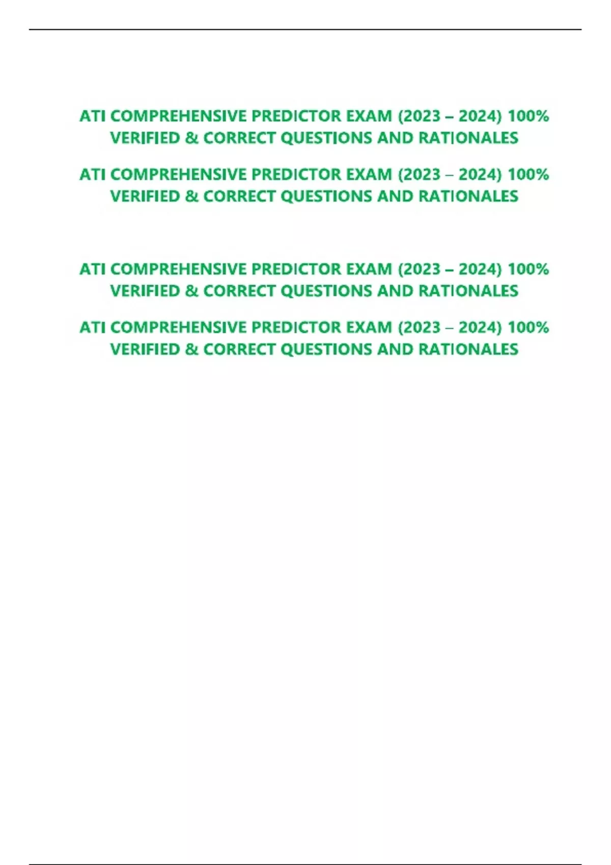 ATI COMPREHENSIVE PREDICTOR EXAM (2023 – 2024) 100_ VERIFIED & CORRECT QUESTIONS AND RATIONALES- full