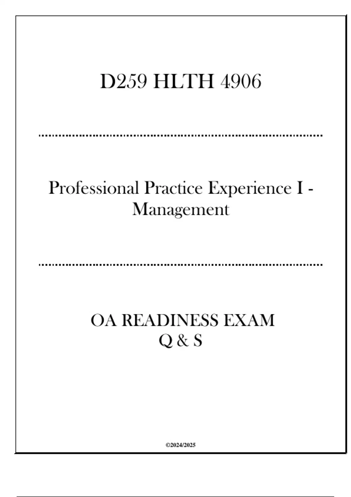(D259) HLTH 4906 Professional Practice Experience I (Management) - OA Readiness Exam Q & S 2024.