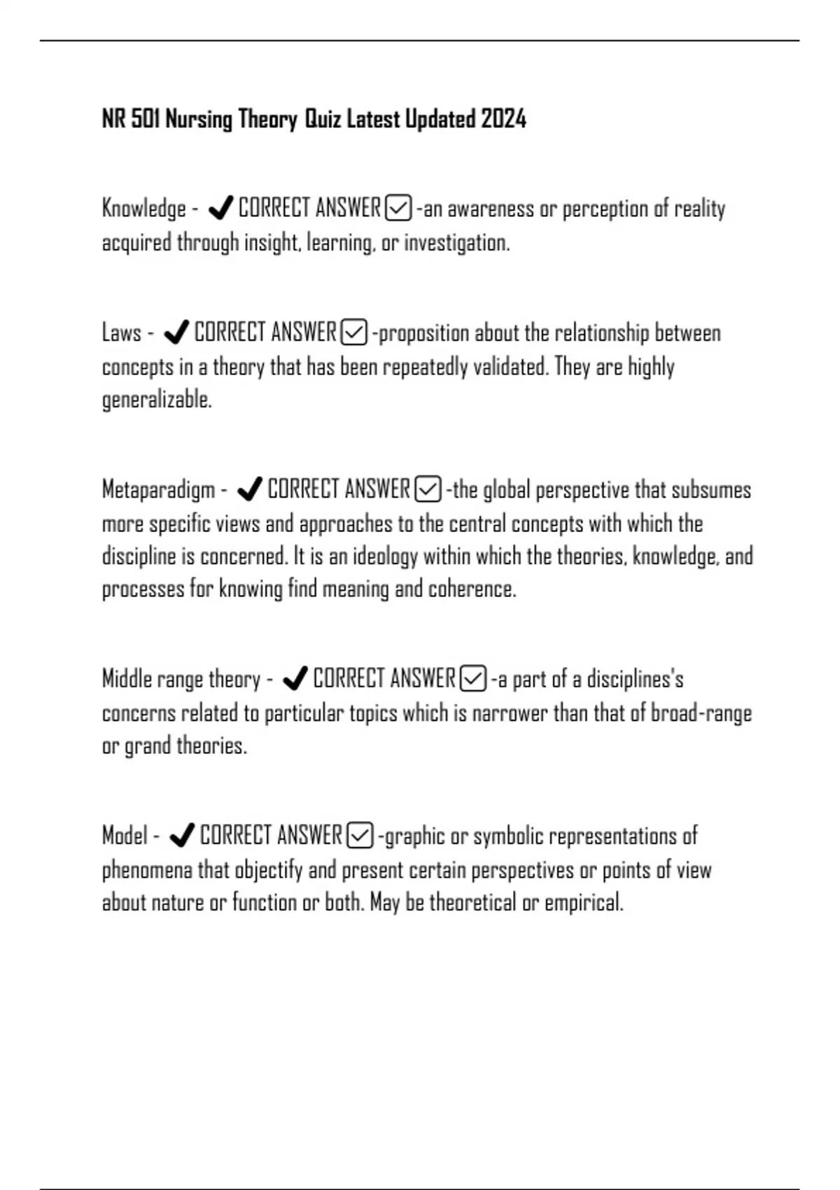 NR 501 Nursing Theory Quiz Latest Updated 2024