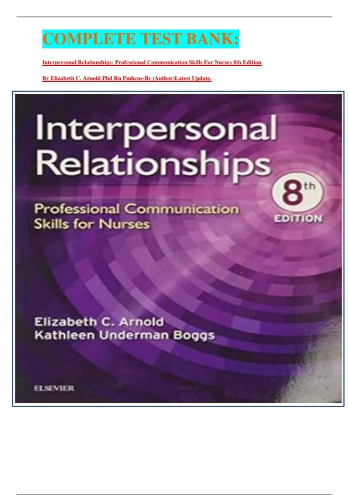 COMPLETE TEST BANK: Interpersonal Relationships: Professional Communication Skills For Nurses 8th Edition By Elizabeth C. Arnold Phd Rn Pmhcns-Bc (Author)Latest Update.