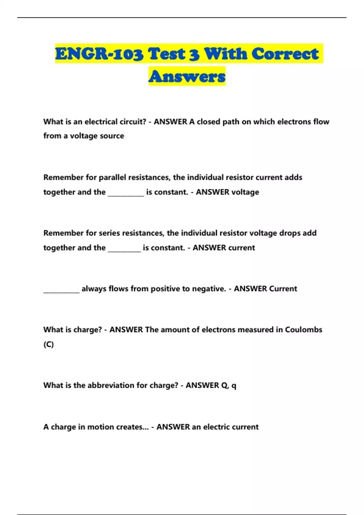 Define voltage. - ANSWER Difference in electrical charge from one point to