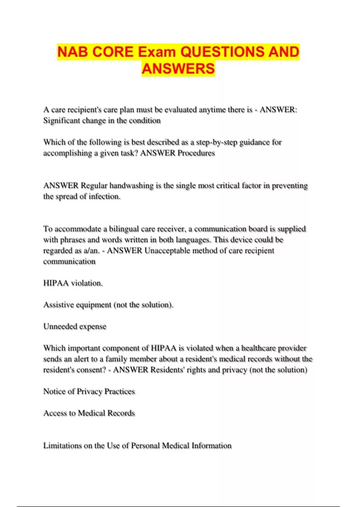 NAB CORE Exam QUESTIONS AND ANSWERS...