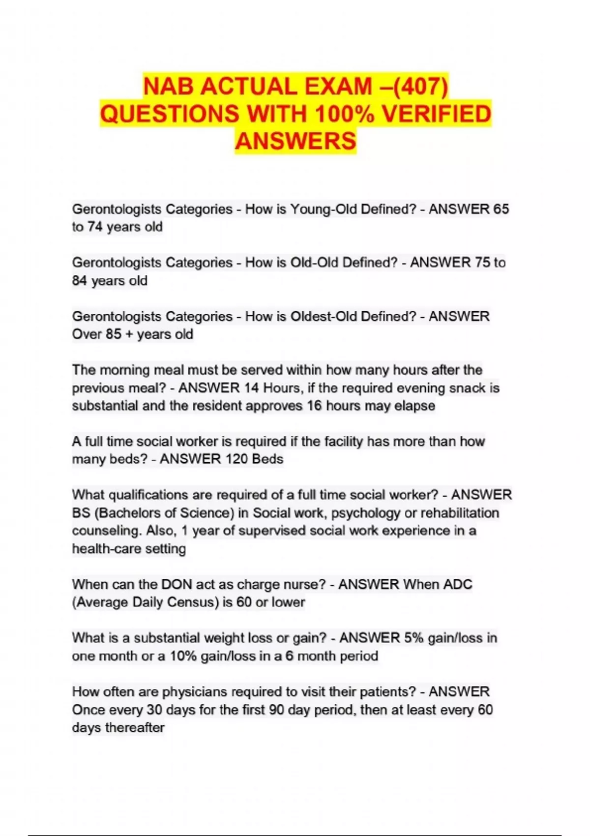 NAB ACTUAL EXAM –(407) QUESTIONS WITH 100 VERIFIED ANSWERS...