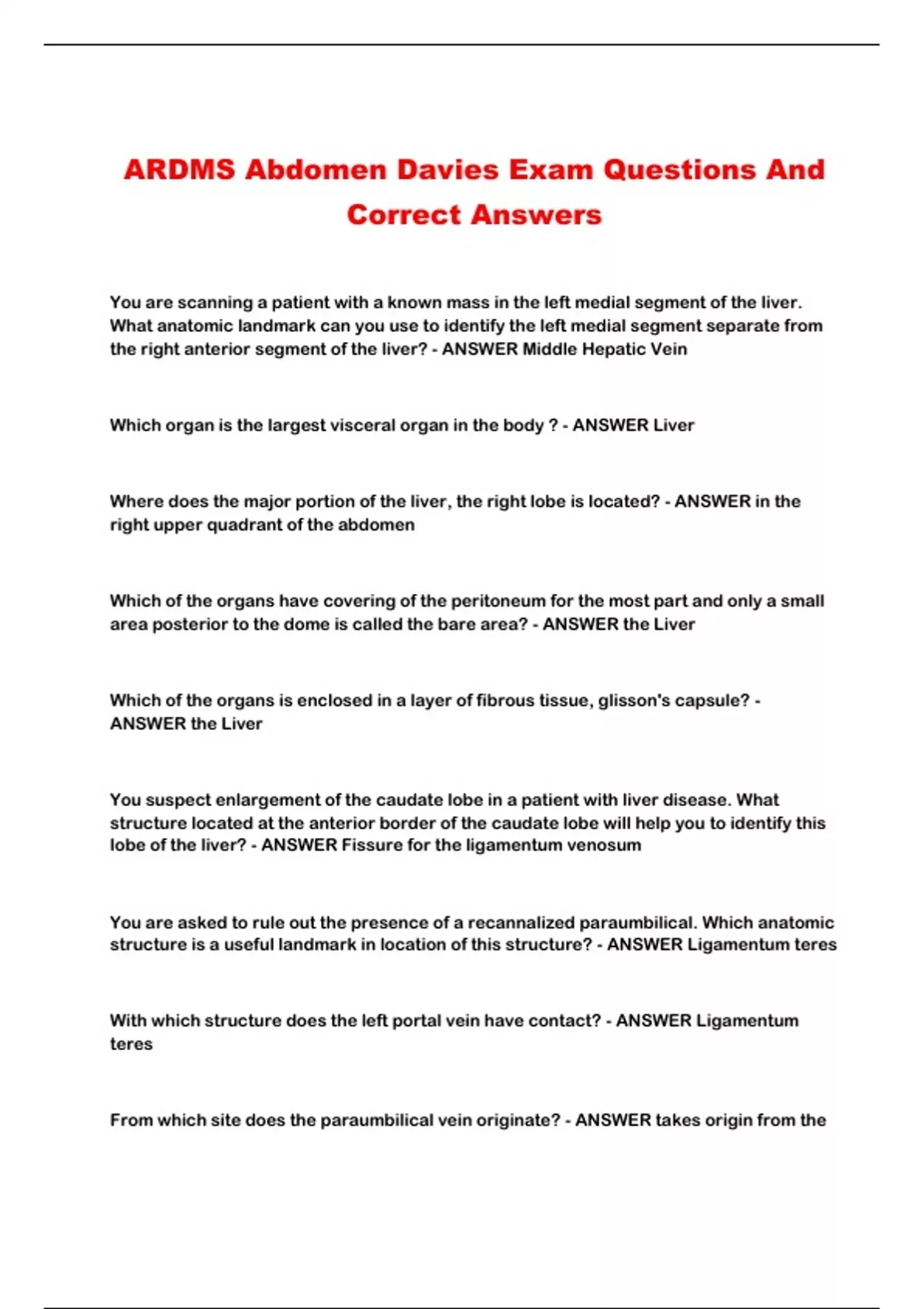 ARDMS Abdomen Davies Exam Questions And