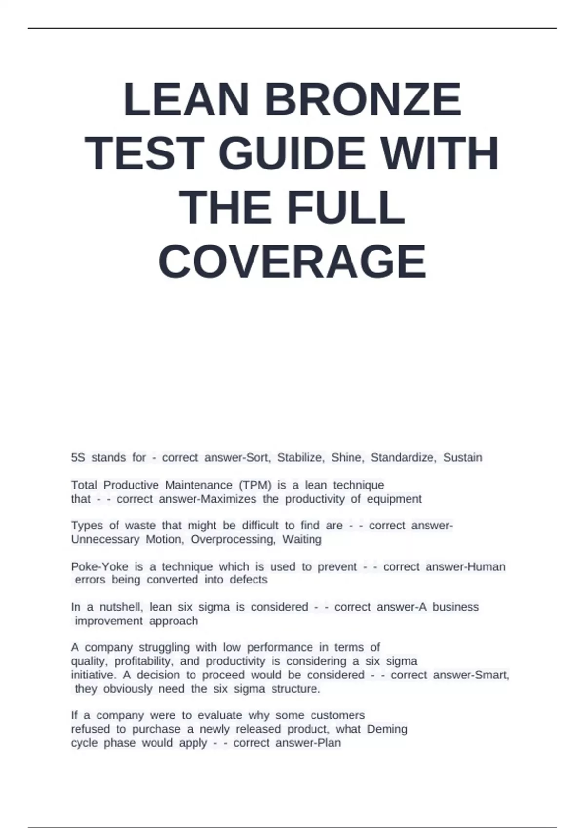 LEAN BRONZE TEST GUIDE WITH THE FULL COVERAGE