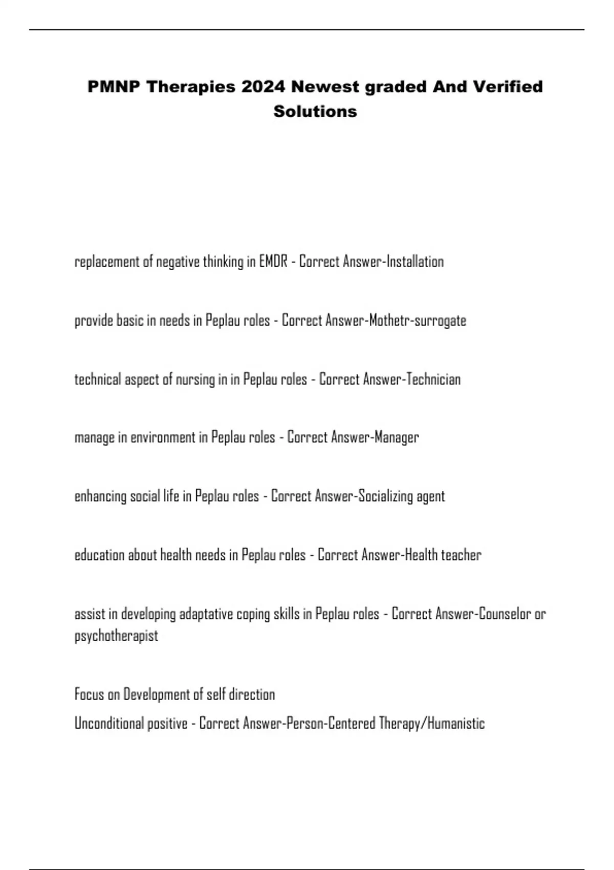 PMNP Therapies 2024 Newest graded And Verified Solutions