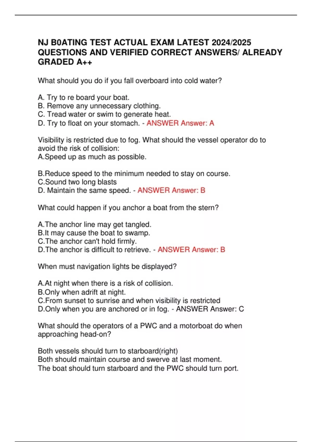 NJ B0ATING TEST ACTUAL EXAM LATEST 2024/2025