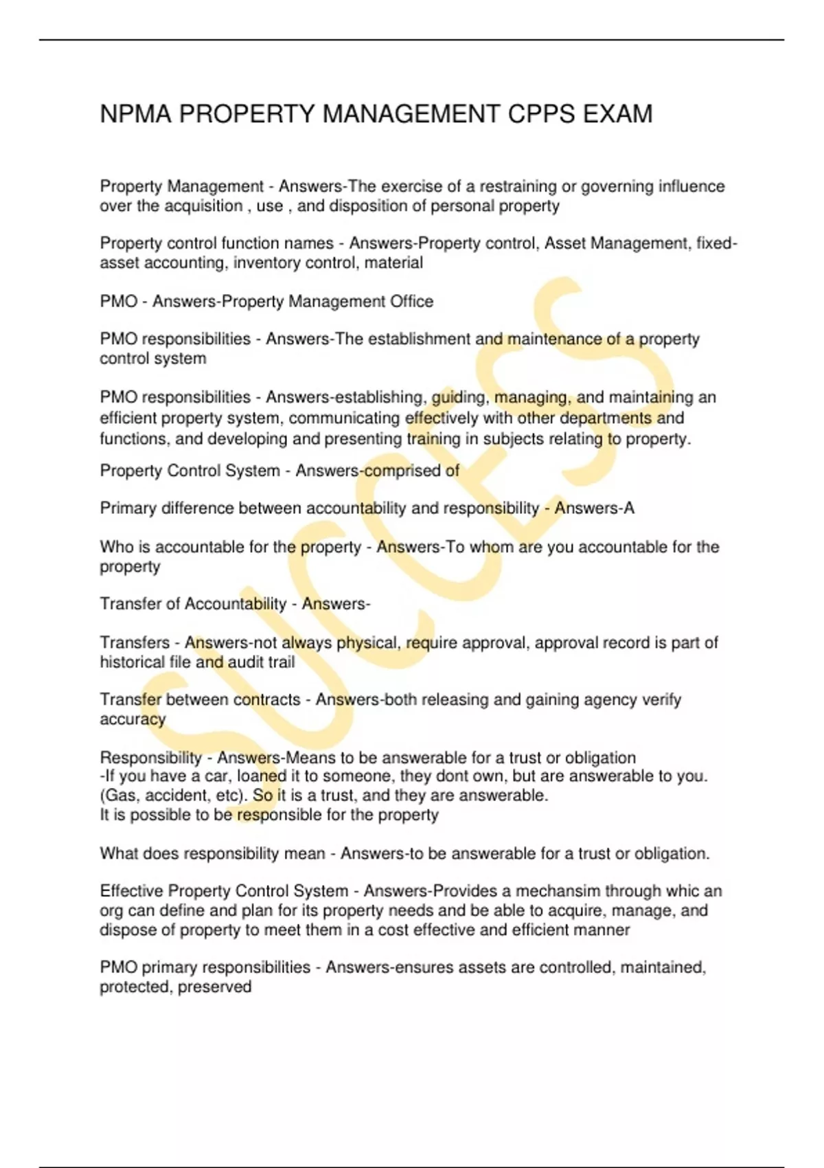 NPMA PROPERTY MANAGEMENT CPPS EXAM