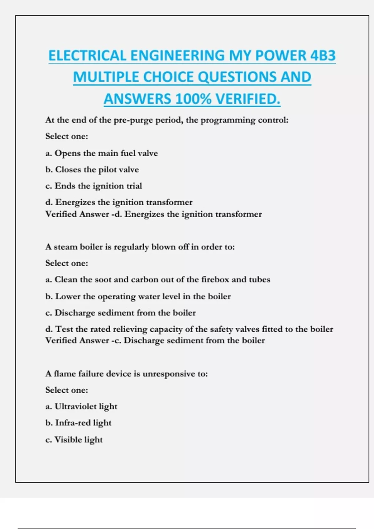 ELECTRICAL ENGINEERING MY POWER 4B3 MULTIPLE CHOICE QUESTIONS AND ANSWERS 100% VERIFIED.