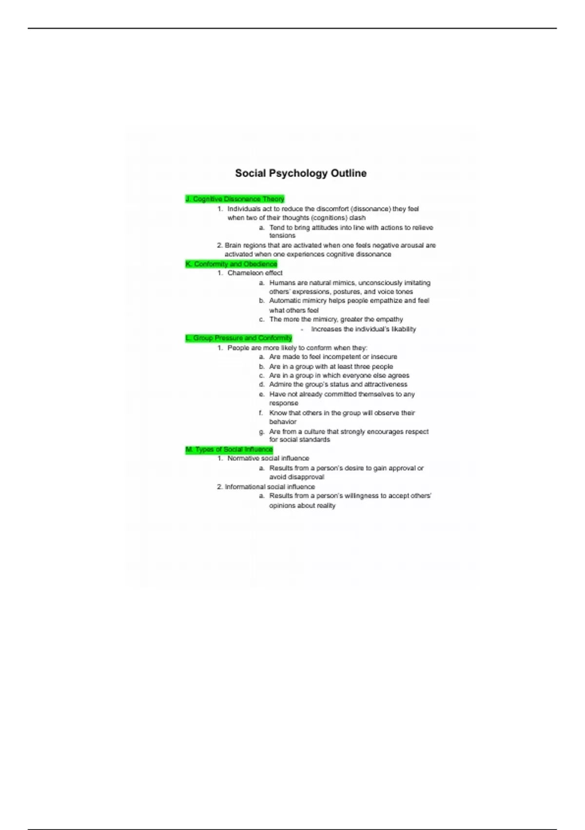 Social Psychology Outline