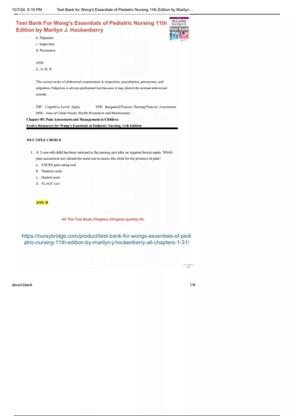 , 10/7/24, 6:10 PM Test Bank for Wong's Essentials of Pediatric Nursing 11th Edition by Marilyn …