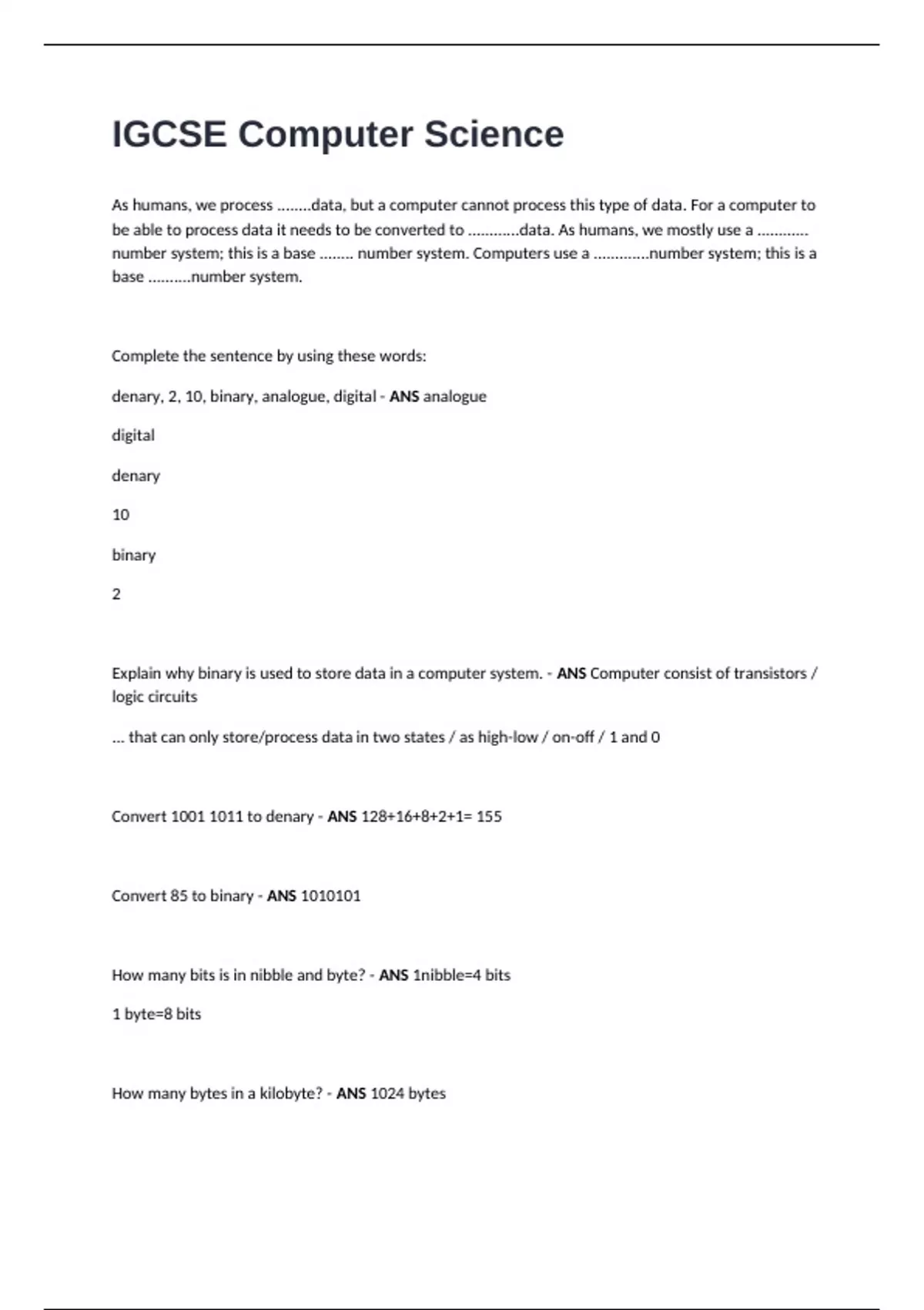 ,Explain the differences between the binary system and the denary sytem. - ANS -The Binary number