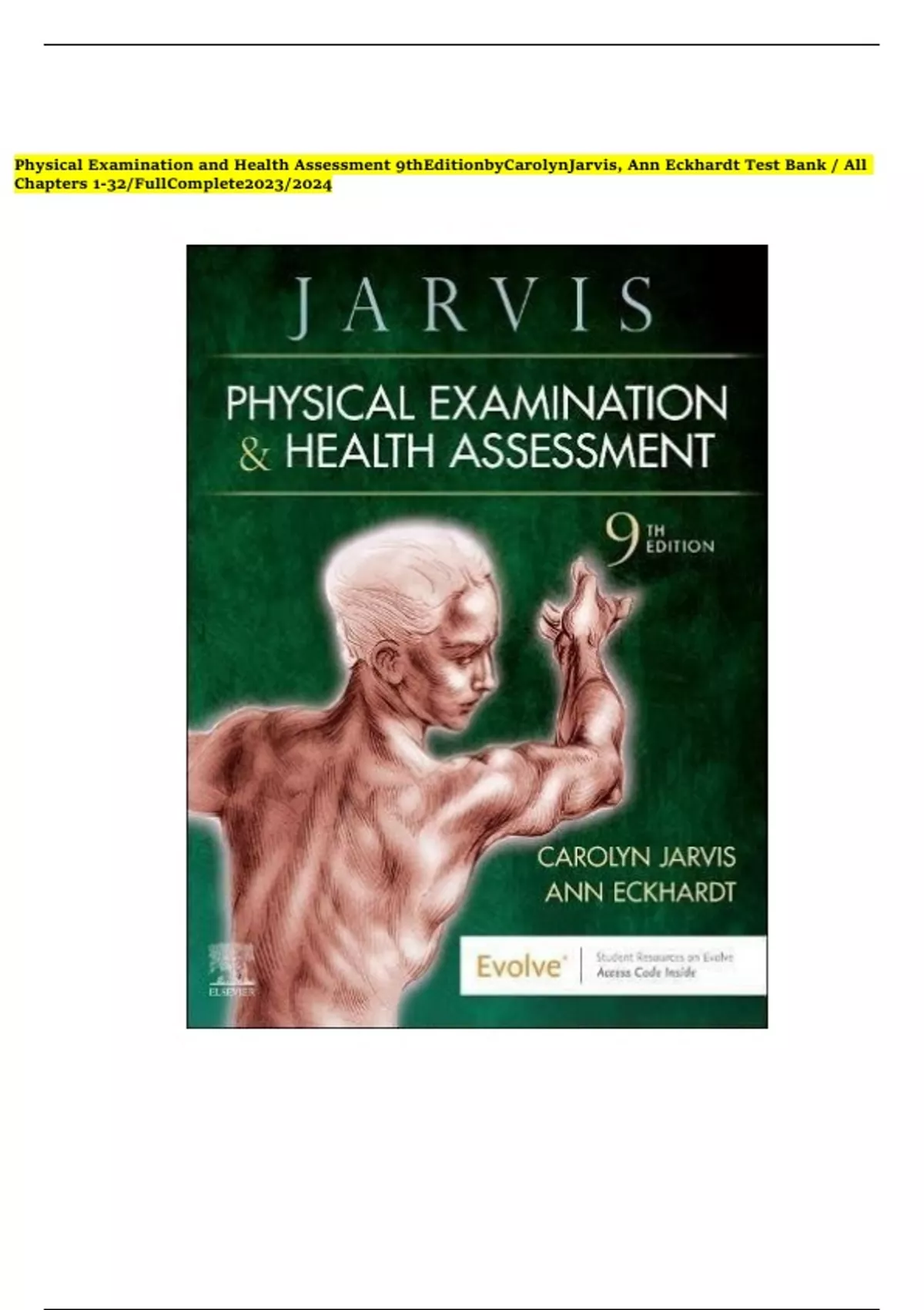 , PHYSICALzEXAMINATIONzANDzHEALTHzASSESSMENTz9THzEDITIONzJARVISzTESTzB