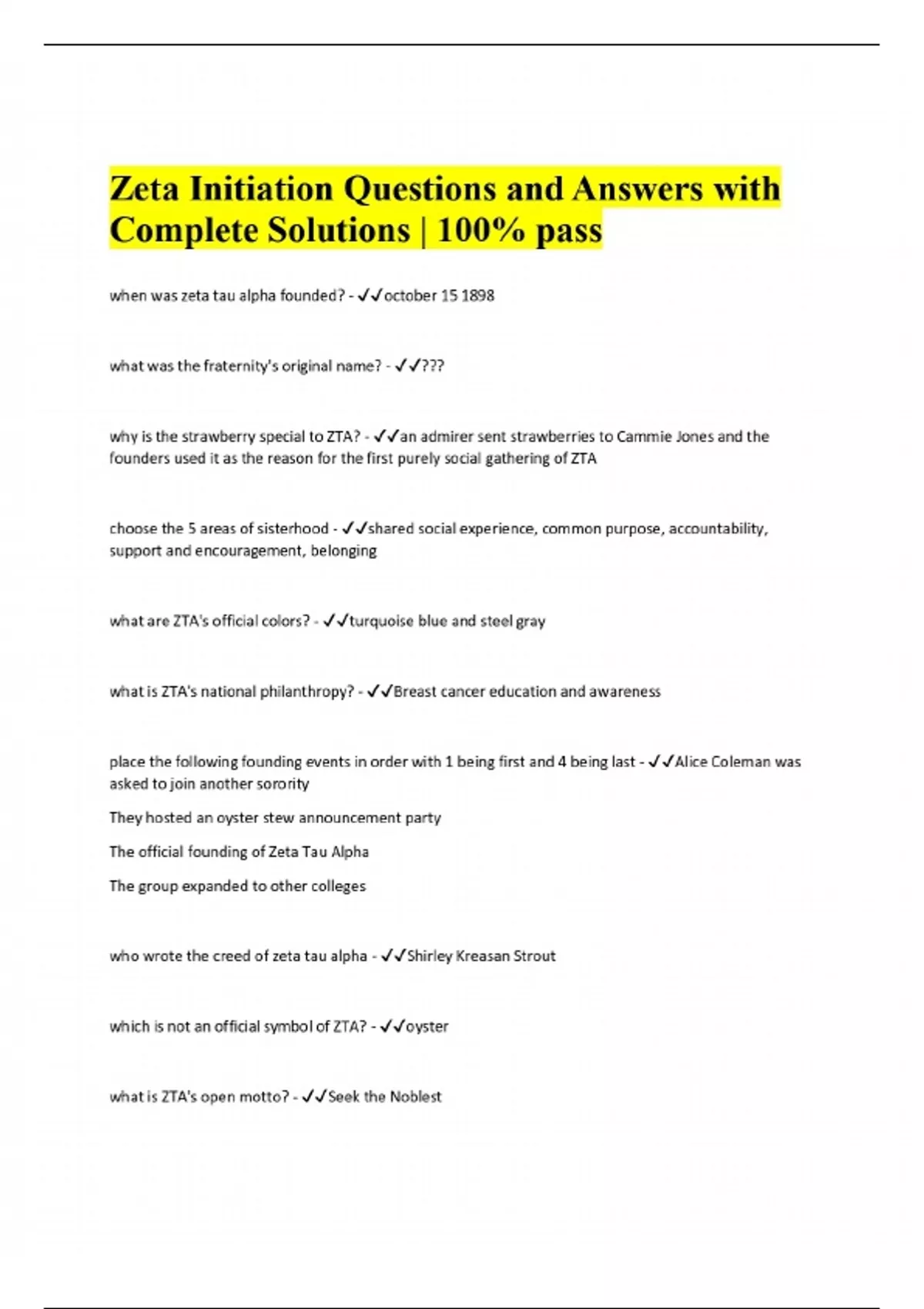 Zeta Initiation Questions and Answers with Complete Solutions | 100% pass
