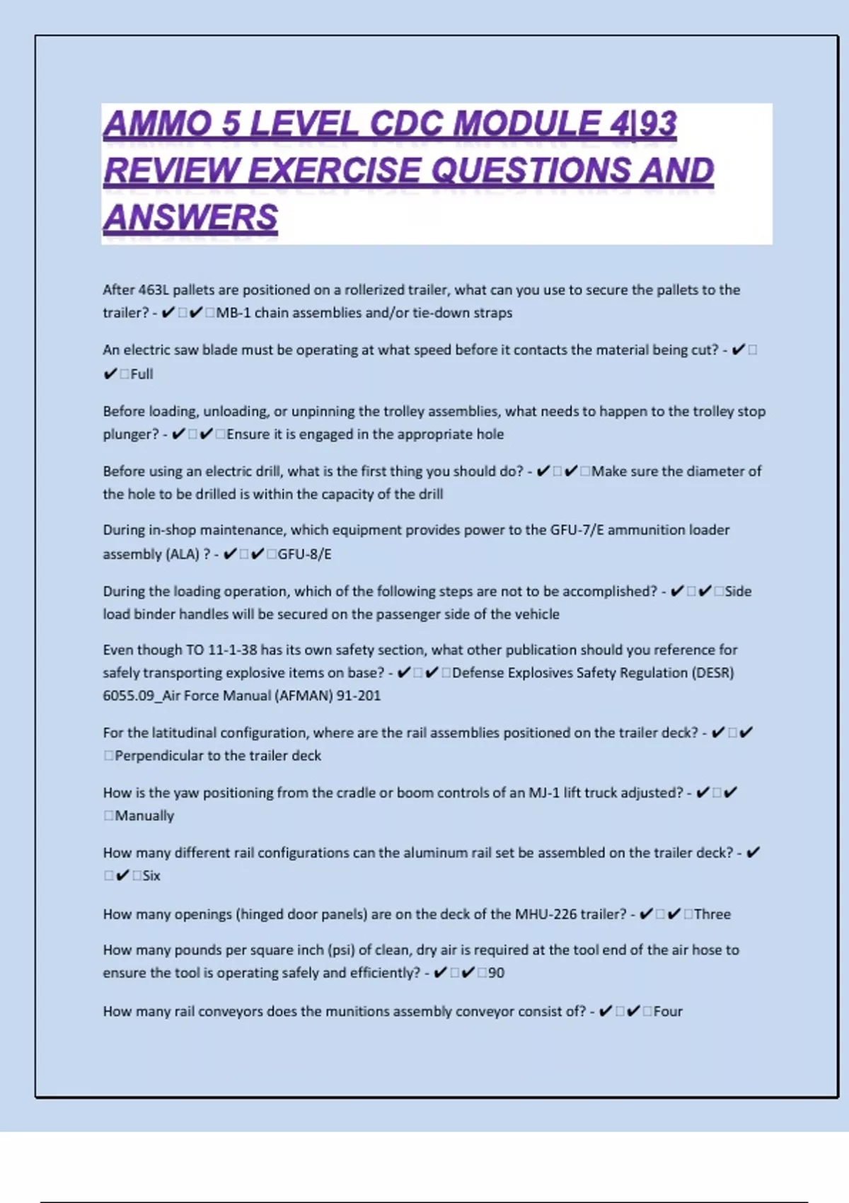 Ammo 5 Level CDC Module 4|93 Review Exercise Questions And Answers